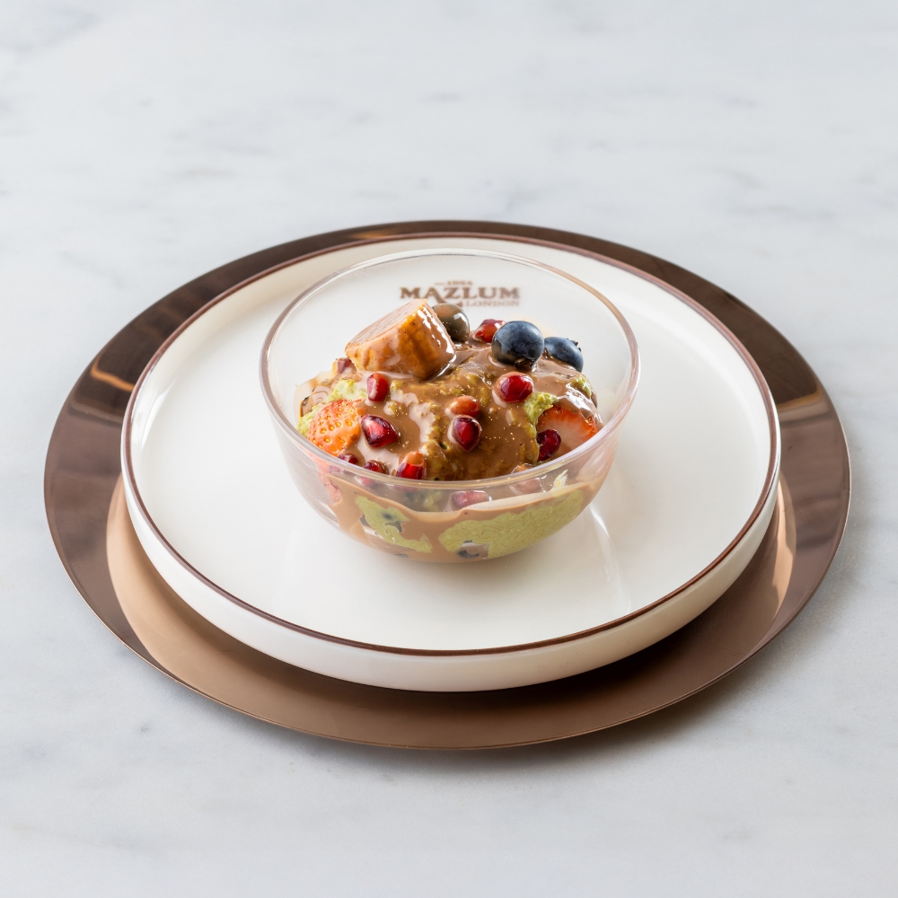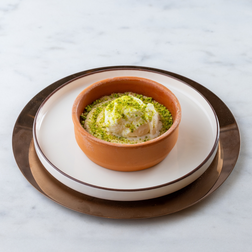 Paper thin pastry layered with butter, filled with clotted cream and finely ground pistachios, crafted with Mazlum’s signature balance and Anatolian craftsmanship (Can be served with turkish ice cream upon request).