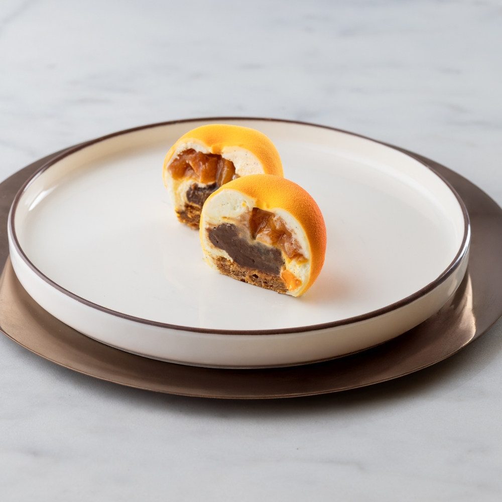 A refined apple creation with a smooth vanilla mousse and a delicate apple centre.