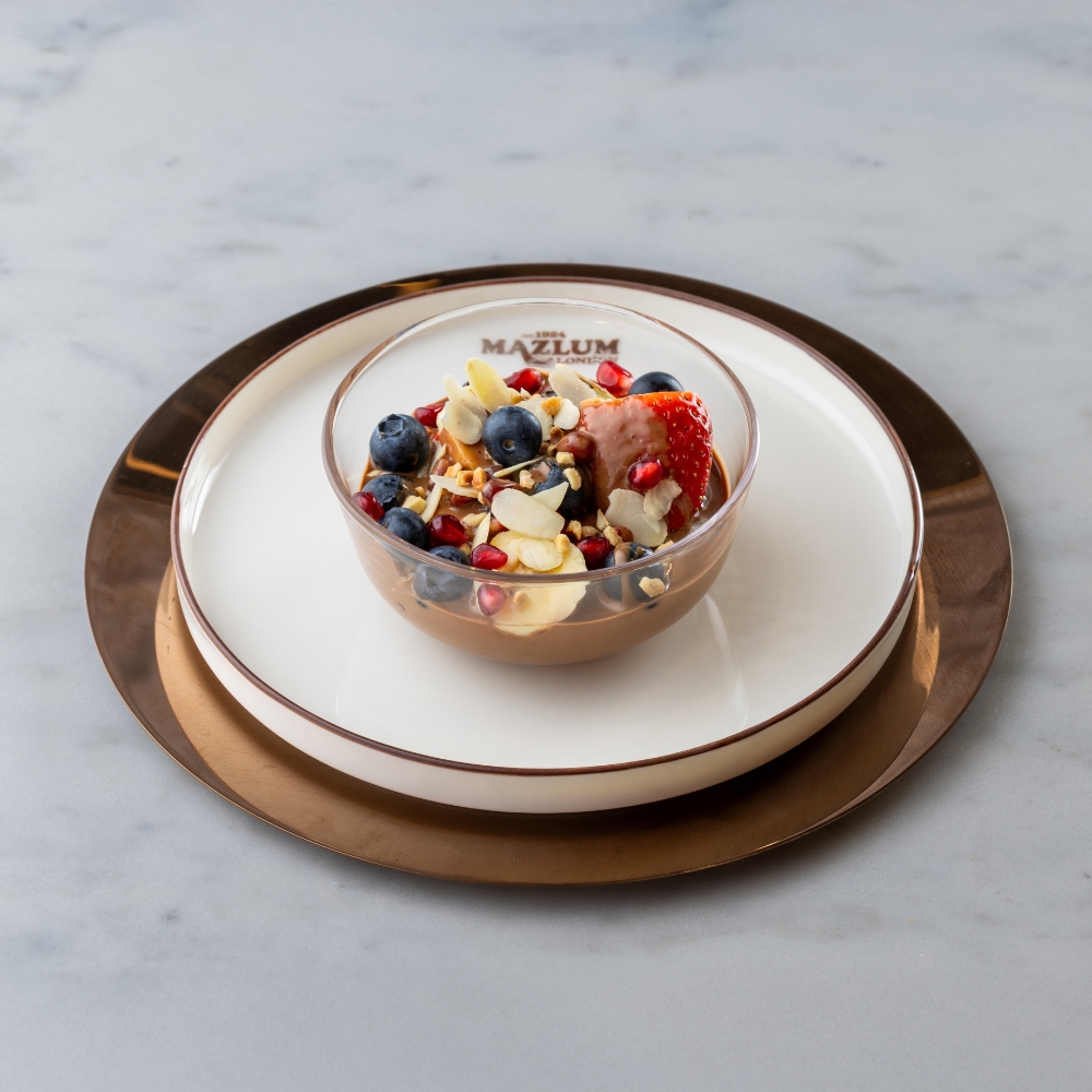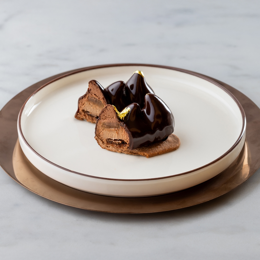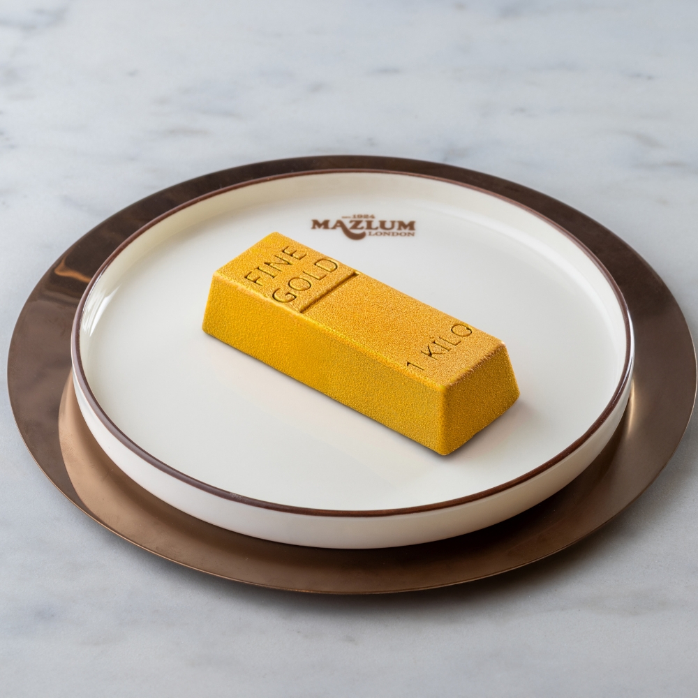 Chocolate mousse in a golden shell, crafted to honour Mazlum’s heritage.