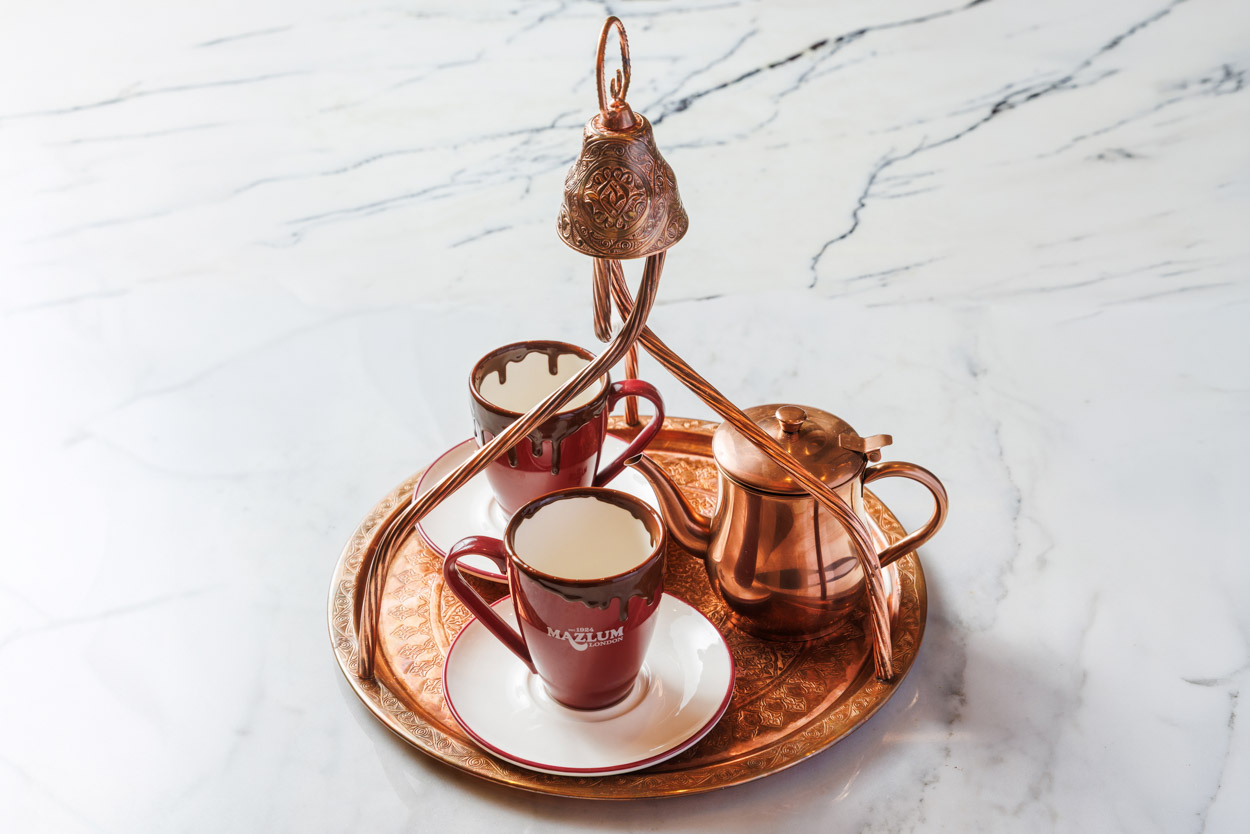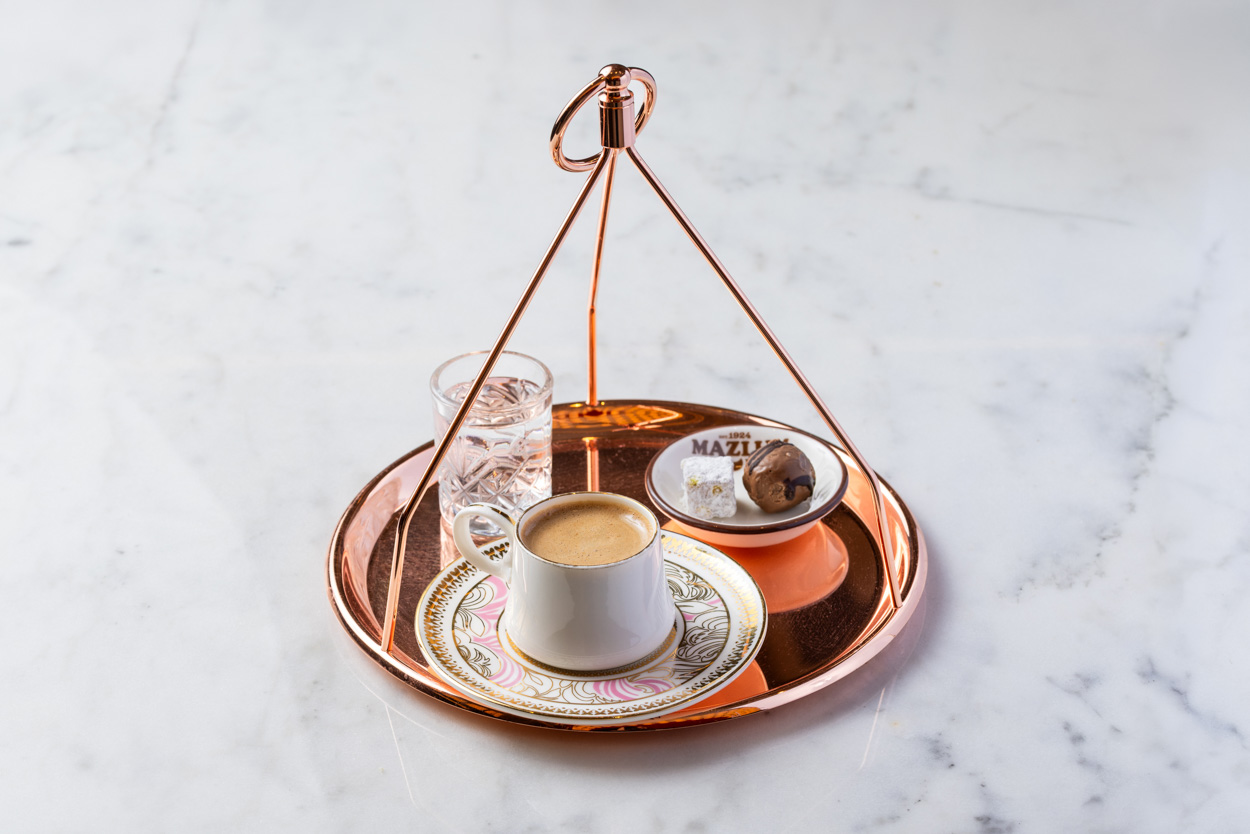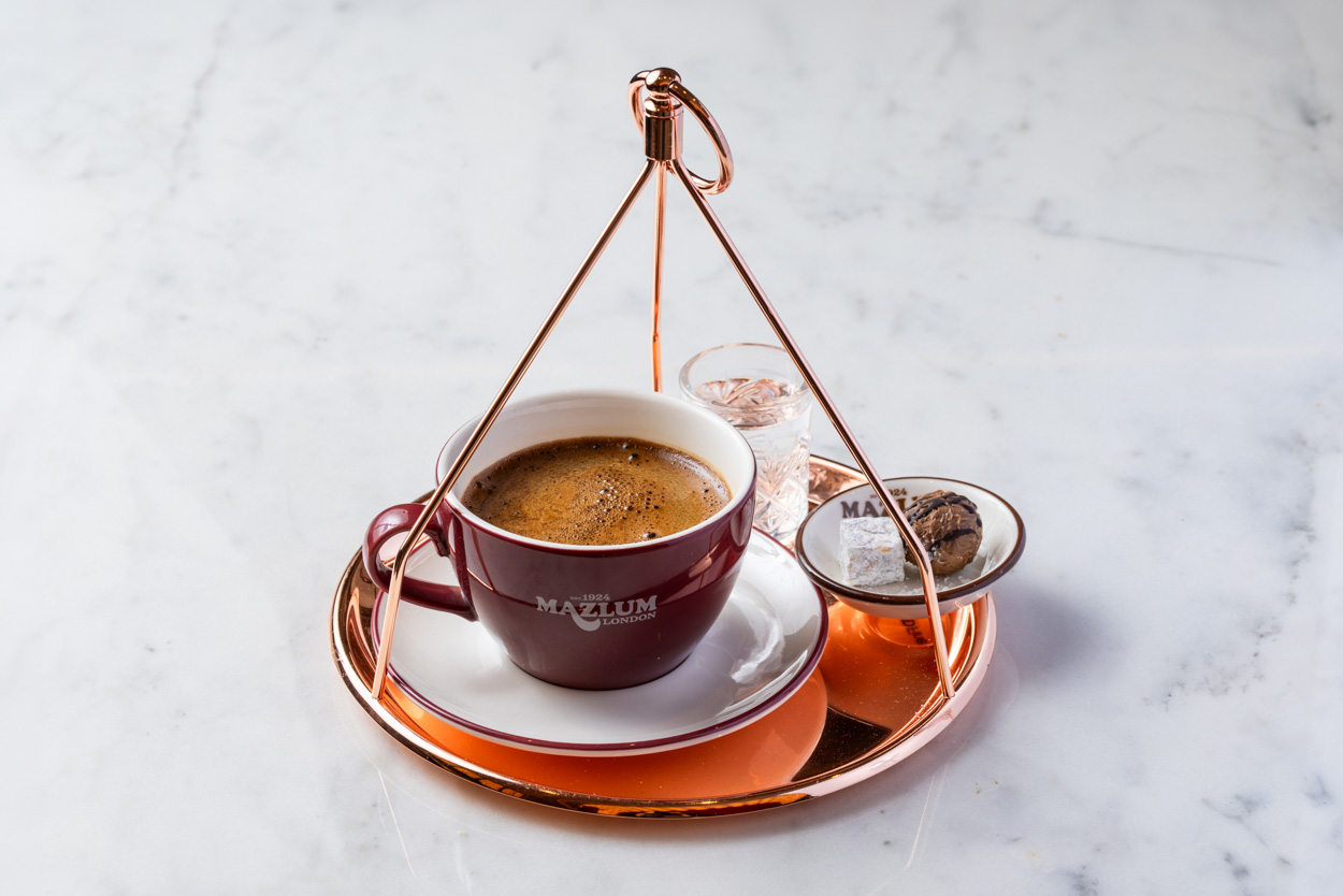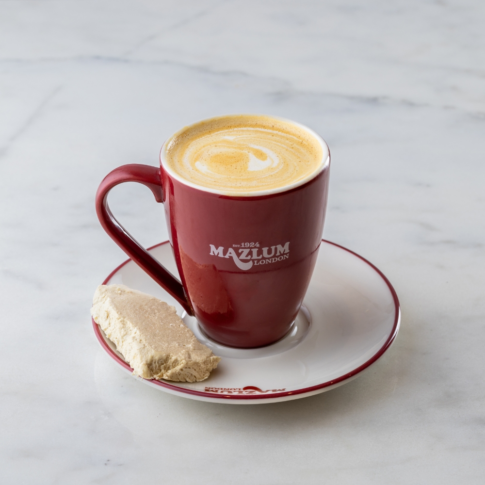 A classic macchiato with a Mazlum signature touch, served in a chocolate coated cup for a subtle sweetness.
