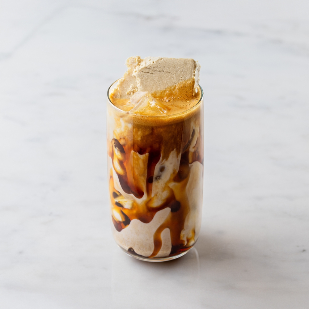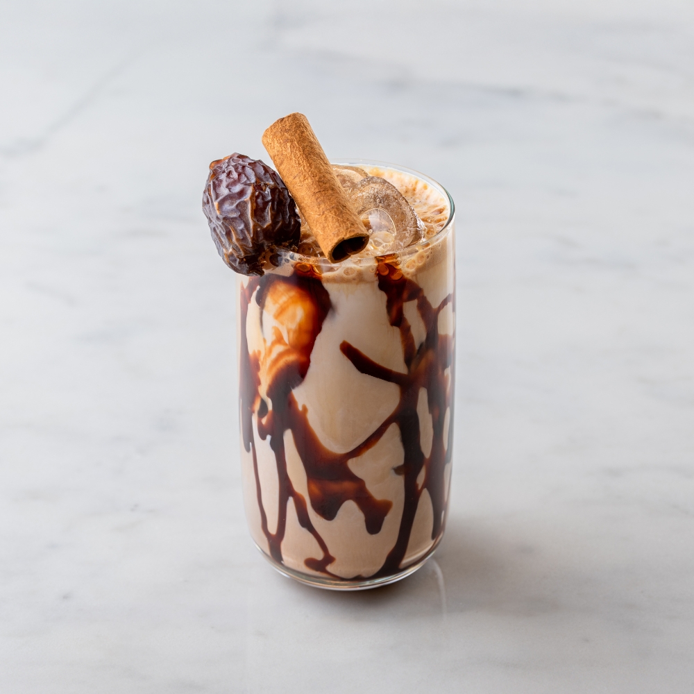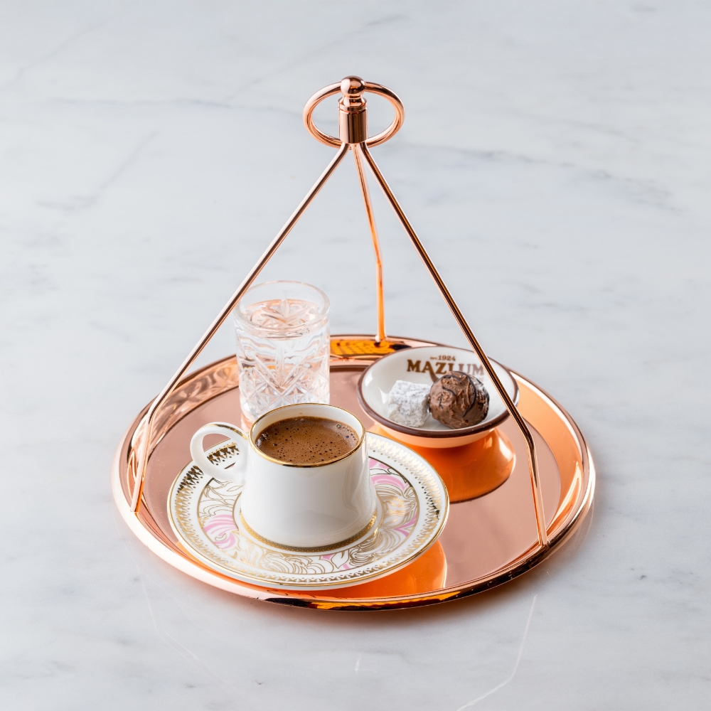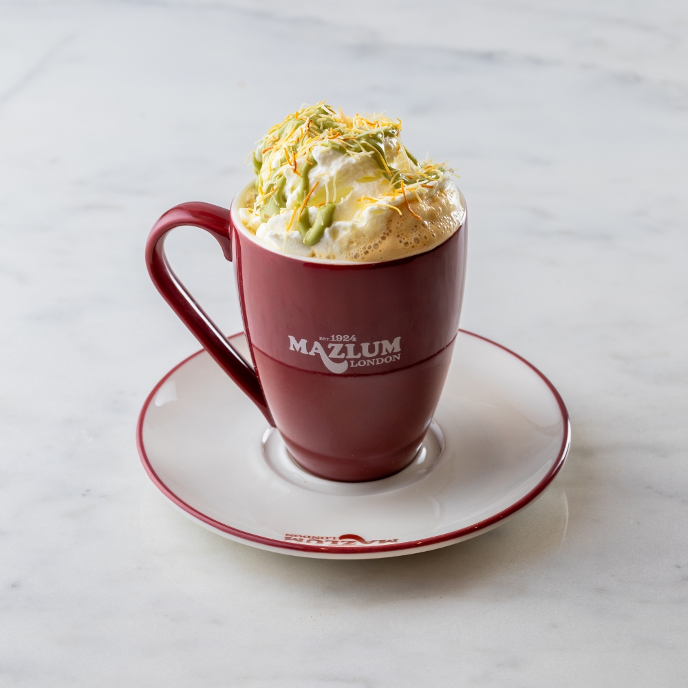 A classic macchiato with a Mazlum signature touch, served in a chocolate coated cup for a subtle sweetness.