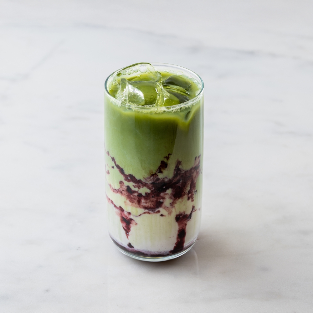 Matcha paired with sweet blueberry essence — fresh and vibrant.