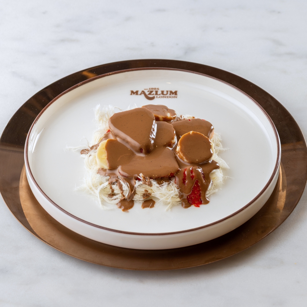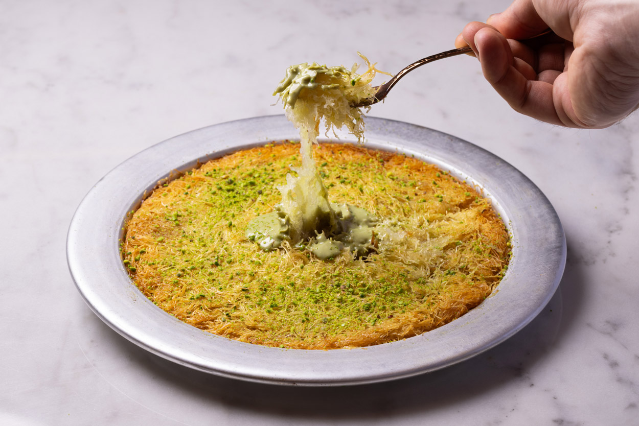 Golden shredded kadayif with melted cheese and syrup, finished with Mazlum’s signature pistachio sauce (Can be served with turkish ice cream upon request).