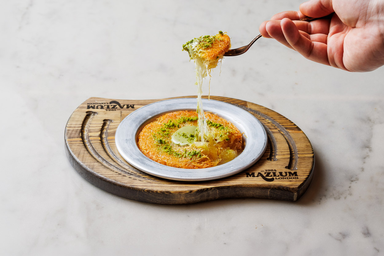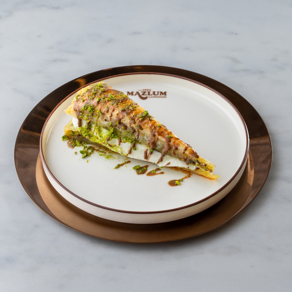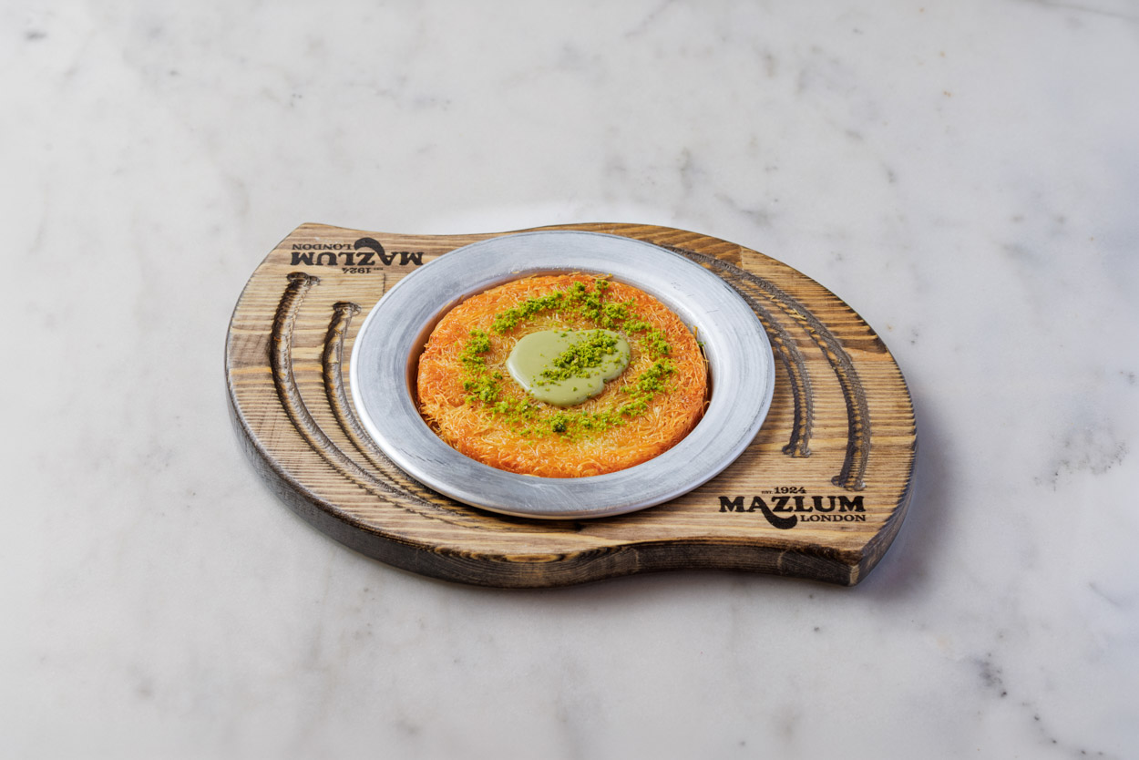 Golden shredded kadayif with melted cheese and syrup, finished with Mazlum’s signature balance and premium pistachios (Can be served with turkish ice cream upon request).