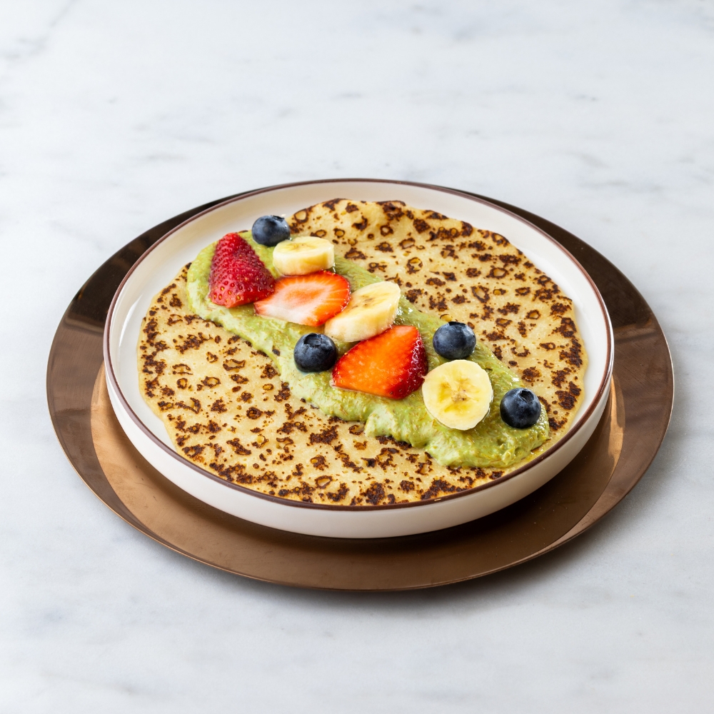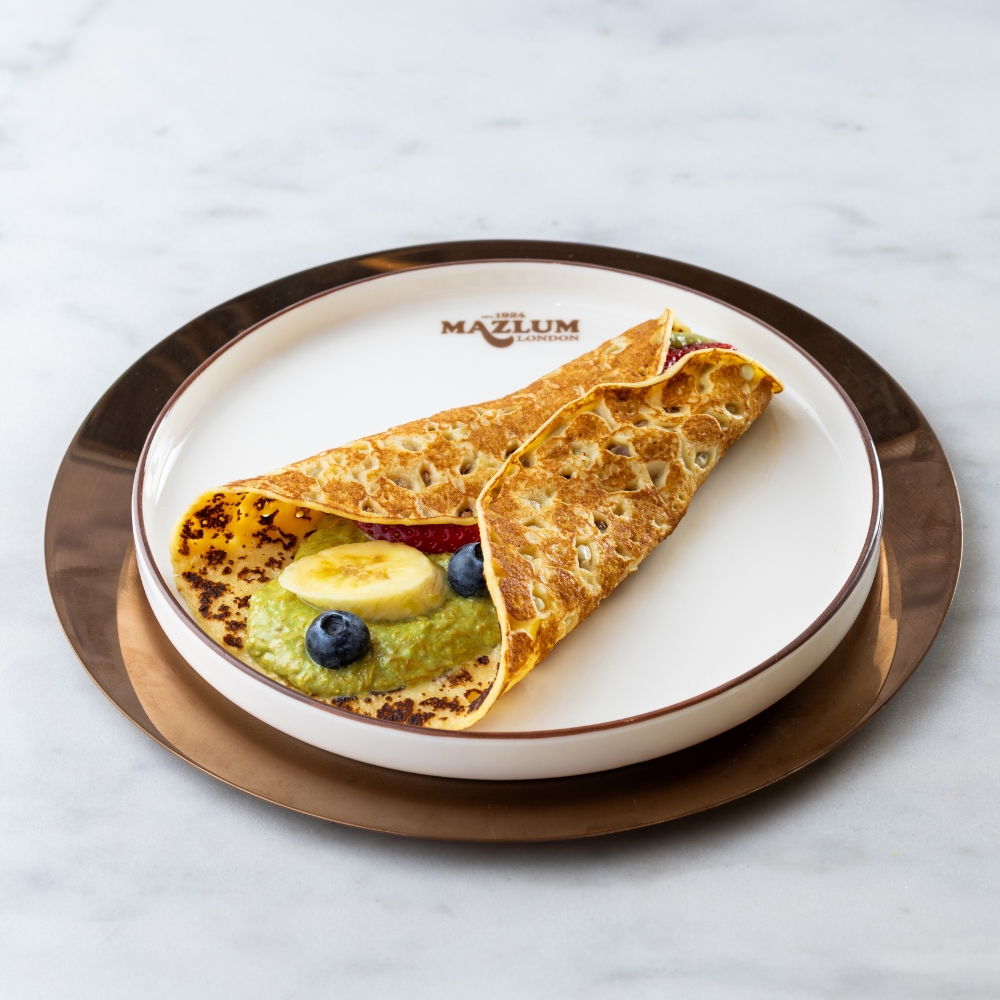 Mazlum’s signature crepe dessert, a delicate harmony of cream and fresh fruits.