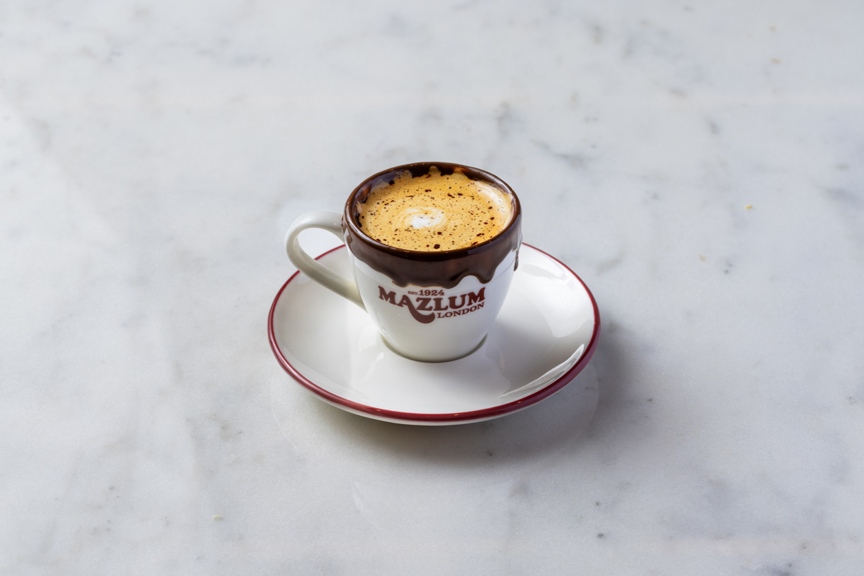 A classic espresso with a Mazlum signature touch, served in a chocolate coated cup for a subtle sweetness.